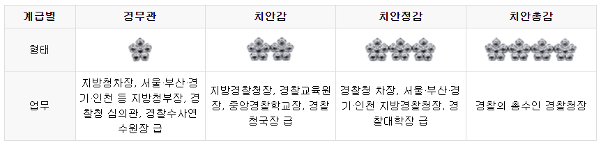참고 문헌: "경찰공무원법 제3조(계급구분)", "경찰청 공식 웹사이트"