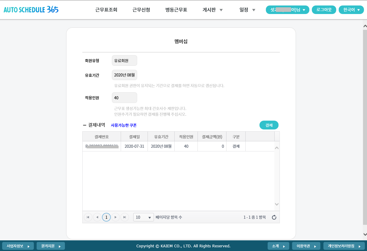 카이엠이라는 벤처회사에서 오토스케줄365 사이트를 통해 메이트런이라는 3교대 근무표 작성 프로그램을 개발해서 배포하고 있었습니다.