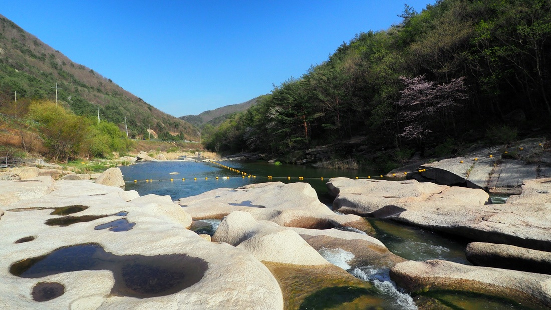 문경팔경 중 하나로 손꼽히는 용추계곡은 ‘암수 두 마리의 용이 하늘로 오르다’라는 전설이 전해지는 신비로운 장소입니다. 에메랄드빛으로 빛나는 맑은 물과 함께, 한쪽 바위에 남은 용비늘 자국은 이곳만의 독특한 매력을 더해 줍니다. 자연 그대로의 청정한 계곡에서 산책을 즐기며, 고요한 물소리에 마음을 맡기면 도심의 피로가 눈 녹듯 사라지는 것을 느낄 수 있습니다.