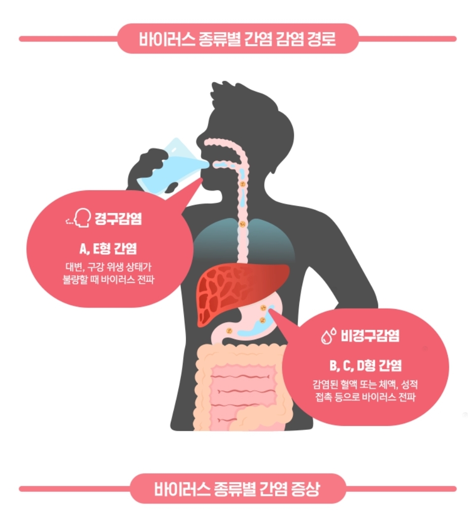 A형 간염 바이러스는 오염된 물과 음식 섭취나 분변을 통한 입으로 감염, 주사기나 성 접촉 등의 전파 경로가 있어요.