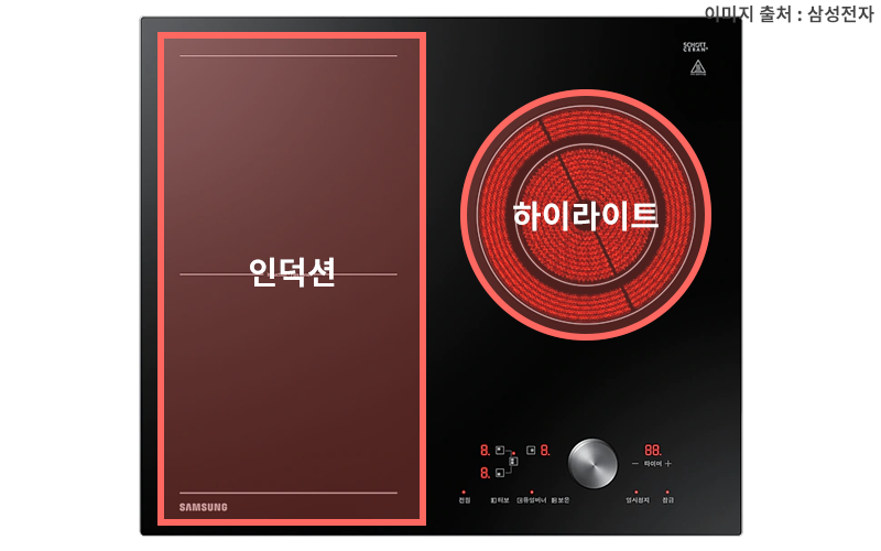 - 하이라이트는 내부에 설치된 적외선 전열선(할로겐 램프 또는 전기 코일)을 통해 복사열을 발생시켜, 복사열이 상판을 가열하고 다시 용기에 전달되는 구조입니다.