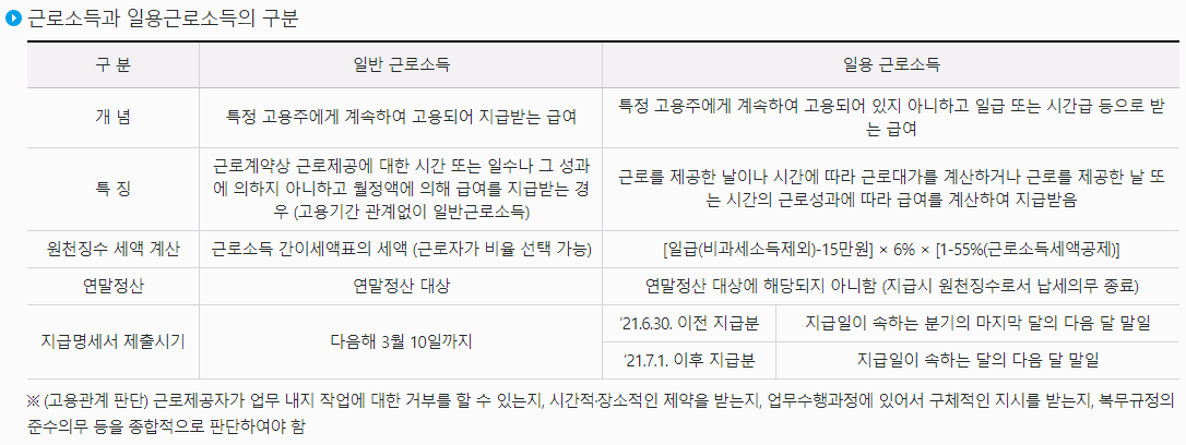 일용직 소득세 유의사항