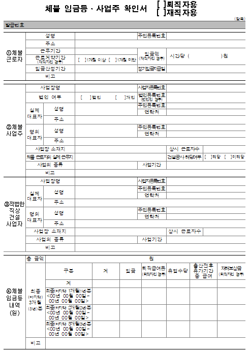 체불임금확인서는 체불된 임금을 되찾기 위한 중요한 도구입니다. 본 자료를 통해 체불임금확인서의 발급 시기와 기준, 신청 방법 등을 이해하셨기를 바랍니다.