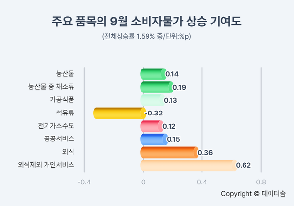 반면, 상반기에 높은 상승세를 보였던 신선과실은 지난달 2.9% 하락하며 안정된 모습을 보였습니다. 이는 2023년 5월 이후 1년 4개월 만에 가장 낮은 수준입니다. 또한, 석유류 가격이 7.6% 하락하면서 지난달 소비자물가 상승률을 0.32%포인트 낮추는 효과를 가져왔습니다. 통계청 관계자는 "가중치가 큰 석유류가 물가를 끌어내리는 데 가장 큰 영향을 미쳤다"며 "채소류를 제외하고는 전반적으로 물가가 높게 나타나지 않았다"고 설명했습니다.
